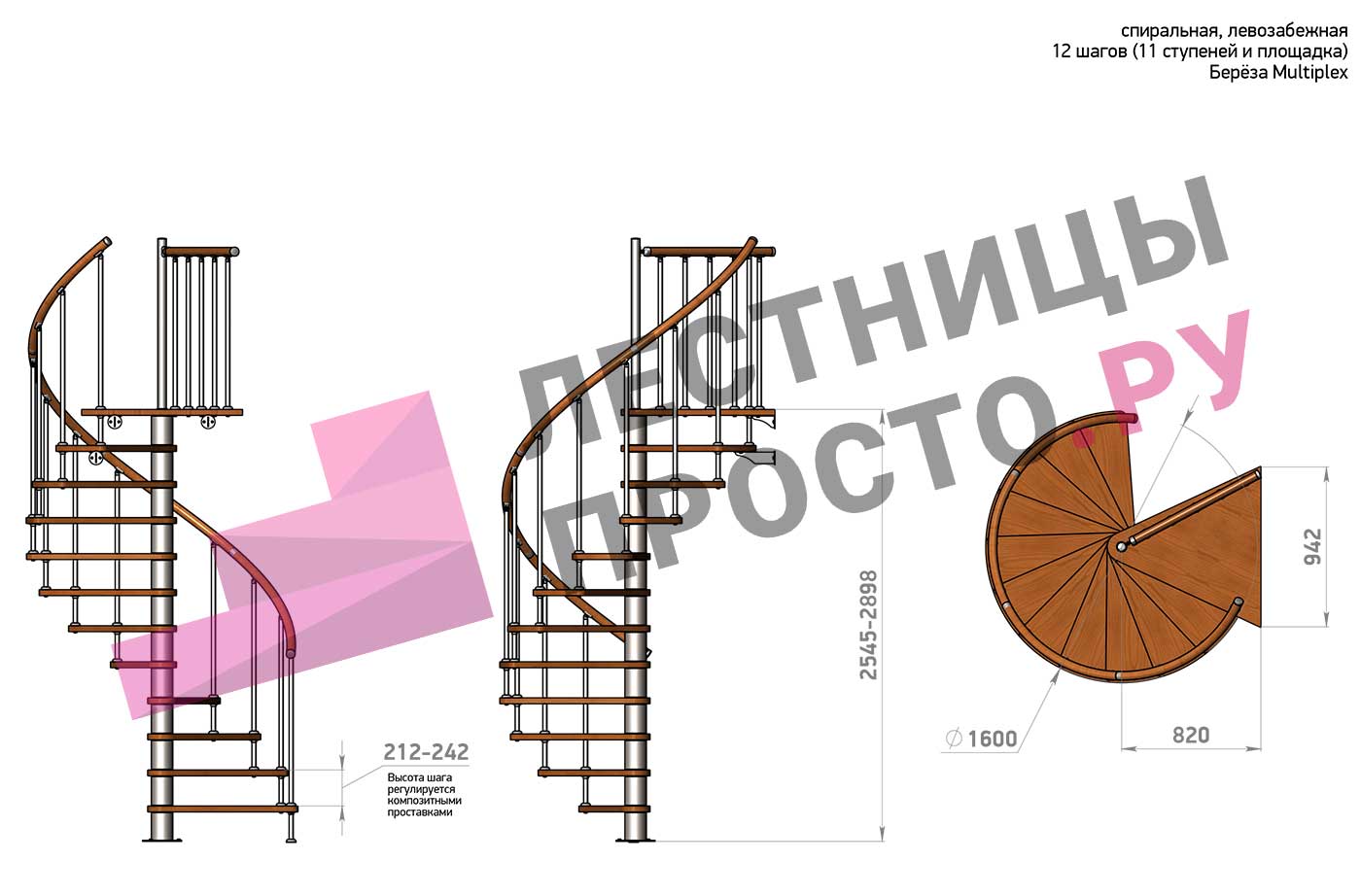 Винтовая лестница Prosto Spiral White D160см, h275.7-313.9 см