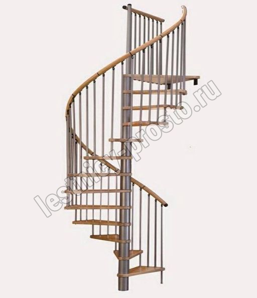 Винтовая лестница SPIRAL WOOD d140 см, серебро, лакированный дуб
