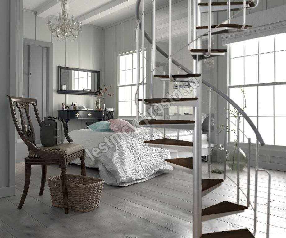 | Винтовая лестница Solo vertical серебро, медовая ольха |
