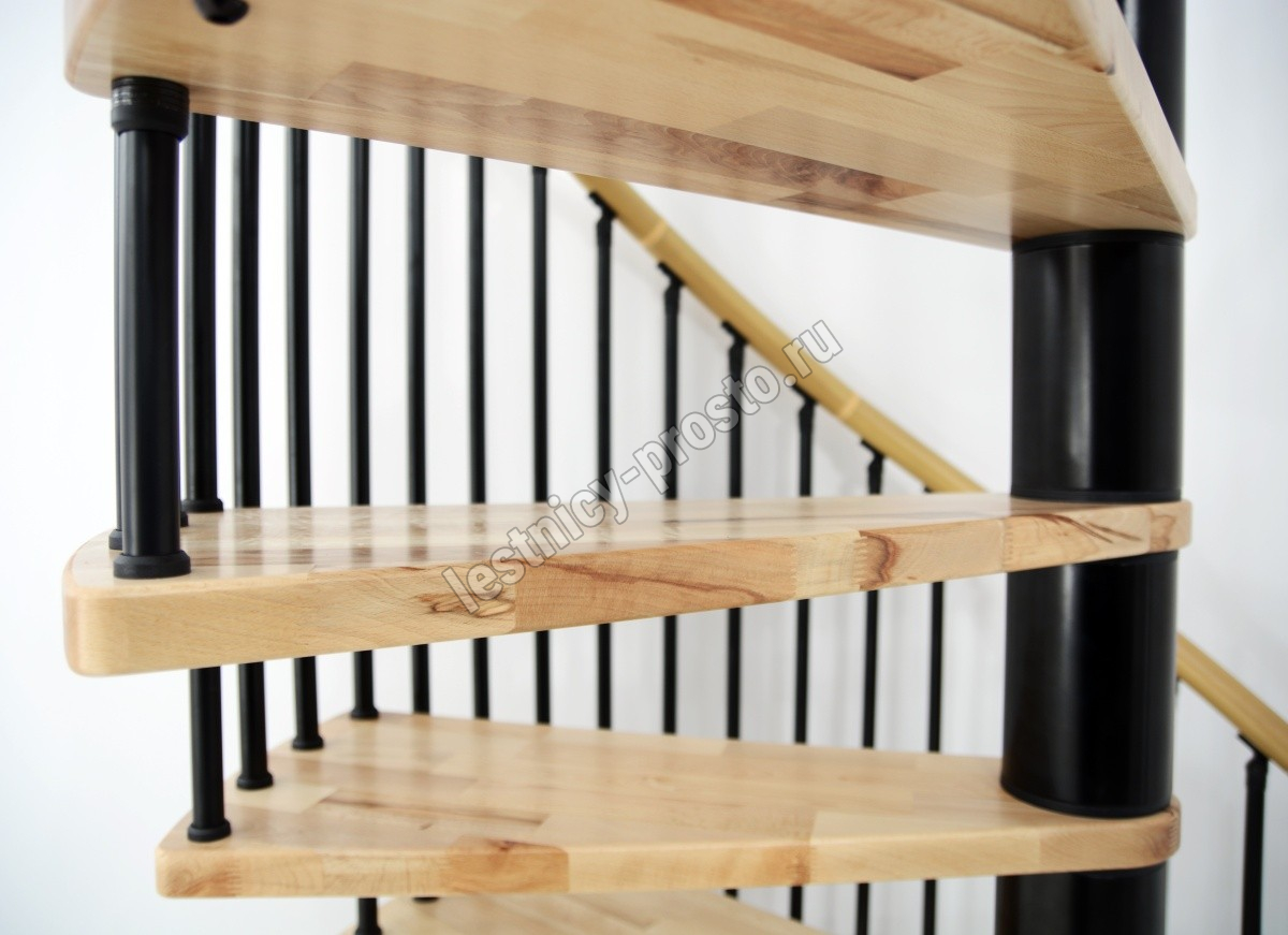 Винтовая лестница SPIRAL WOOD d120 см. чёрная, лакированный дуб