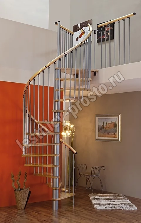 Винтовая лестница SPIRAL WOOD d120 см, серебро, лакированный бук