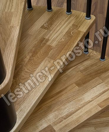 Поручень изготовлен из массива бука или дуба. Ступени и поручень лестницы покрыты износостойким бесцветным лаком.