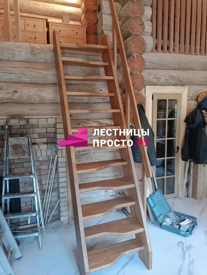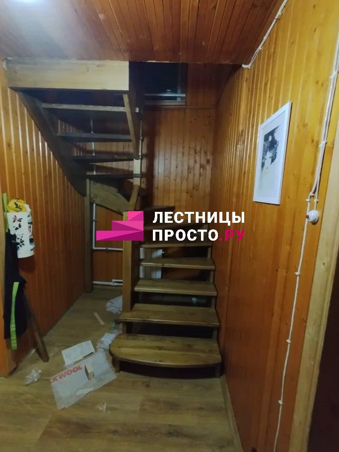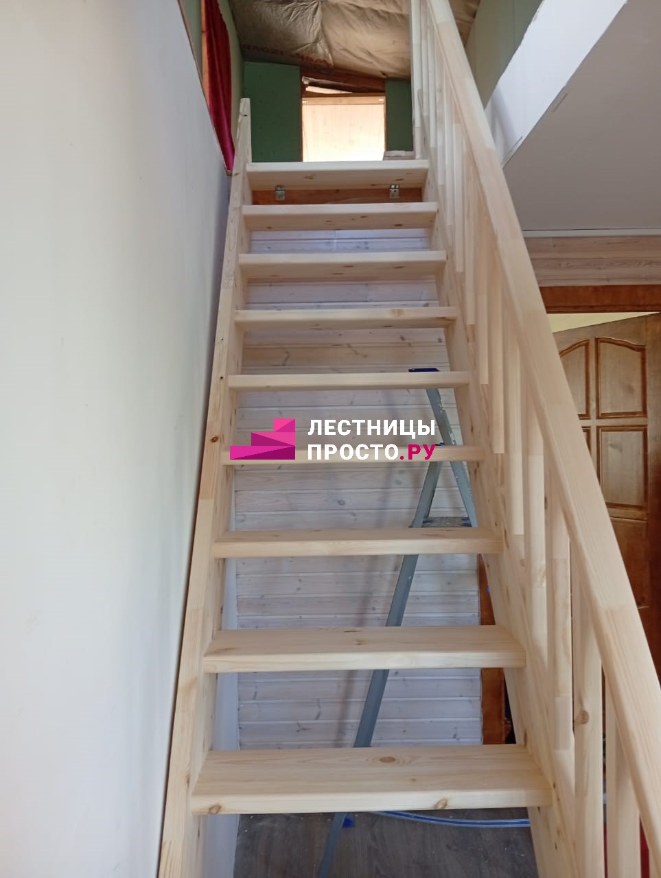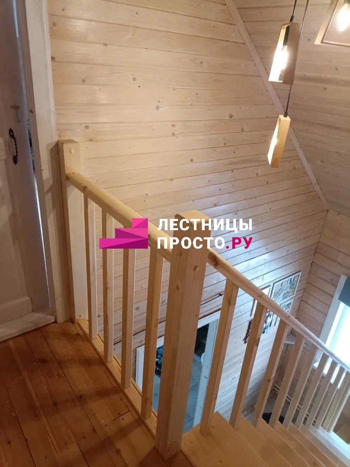 Лестница из сосны с поворотом и подступёнками для частного дома